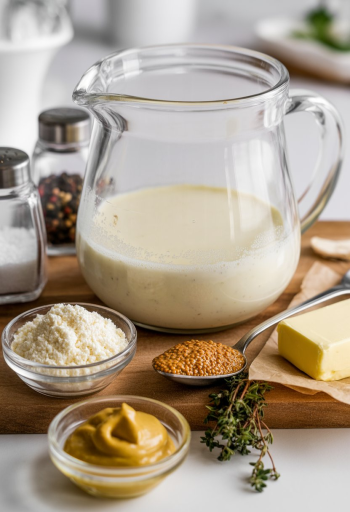 Microwave on high for 1 minute, stir, then heat for another 1–2 minutes until the sauce thickens into a silky, pourable consistency. Season with salt and pepper, taste, and adjust, add more mustard if you like it punchier.