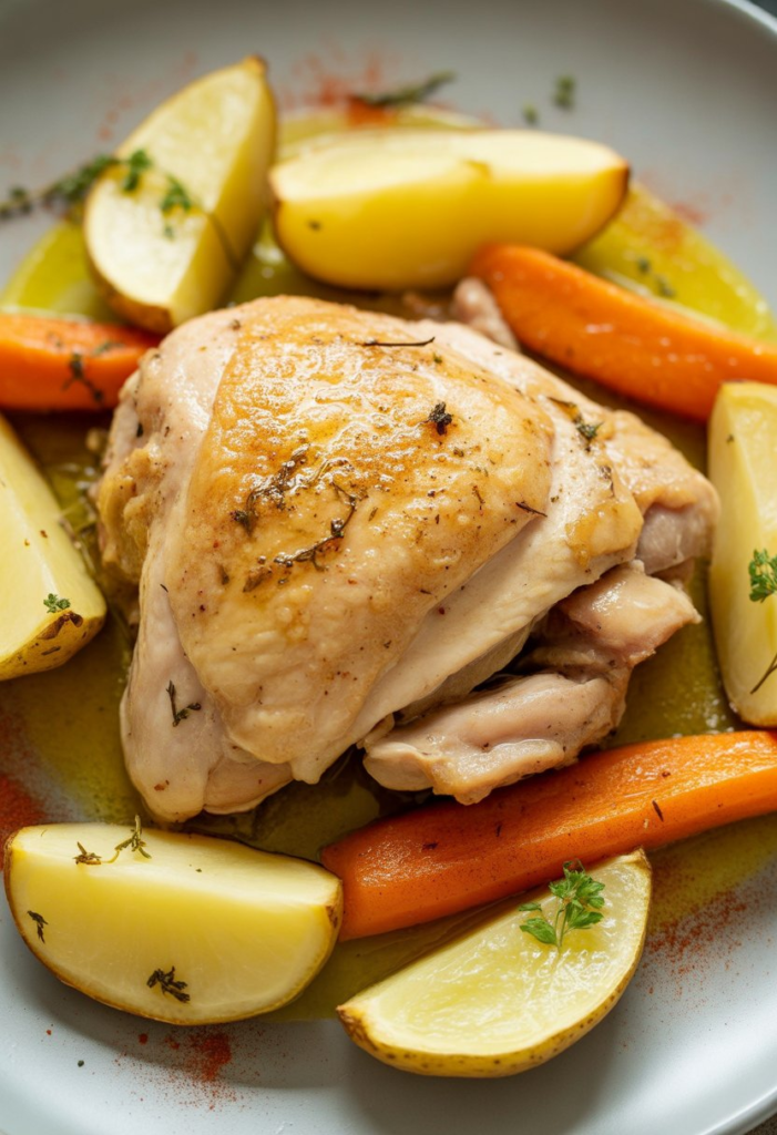Serving Style: Serve the chicken on a large platter with the potatoes and carrots arranged around it. This creates an inviting display for your guests.